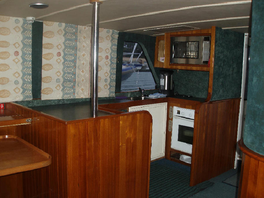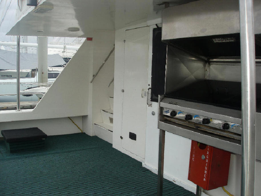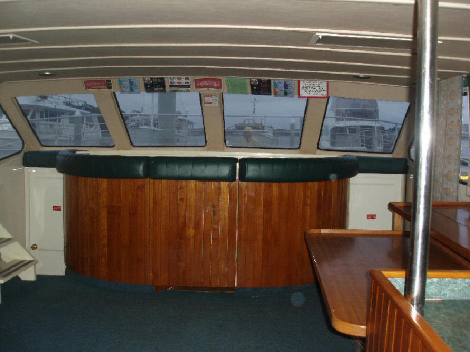 air-conditioned wheelhouse with lounge area, as well as an outdoor dining area. |
